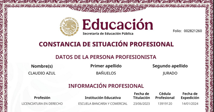 Aún así, la ley del Servicio Profesional de Carrera del Poder Judicial, en su artículo 13, sí advierte que para ser secretario proyectista se necesita tener título en derecho con una antigüedad mínima de tres años anteriores a su nombramiento. Según la constancia de cédula de Claudio Azul, el joven proyectista se tituló el 23 de junio del 2023, es decir, tampoco ha cumplido tres años con este documento, y aún así el OAJ le otorgó su nuevo nombramiento.
