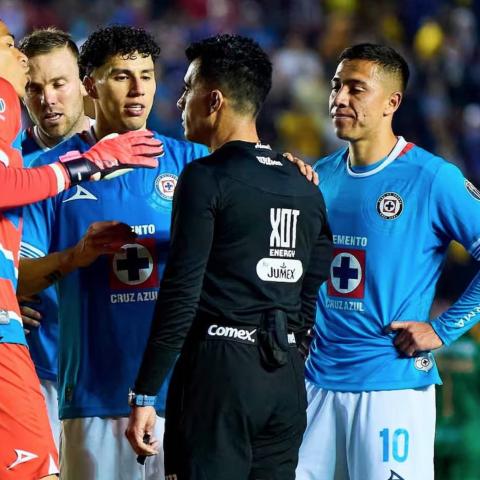 La semifinal entre América y Cruz Azul acabó con los jugadores celestes frustrados y furiosos por presuntas polémicas generadas por decisiones del árbitro, Adonai Escobedo, debido a esto, los jugadores encararon al silbante aguascalentense tras el partido.