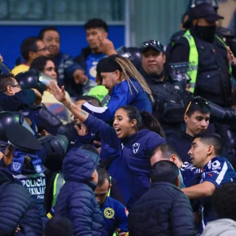 Pese a que en el trámite del encuentro no se reportaron conatos, lamentablemente la violencia terminó haciéndose presente, según versiones, el conato entre un grupo de seguidores de Rayados y otro del América empezó cuando el partido vivía los últimos minutos, sin embargo, fue con el silbatazo final que la bronca escaló.