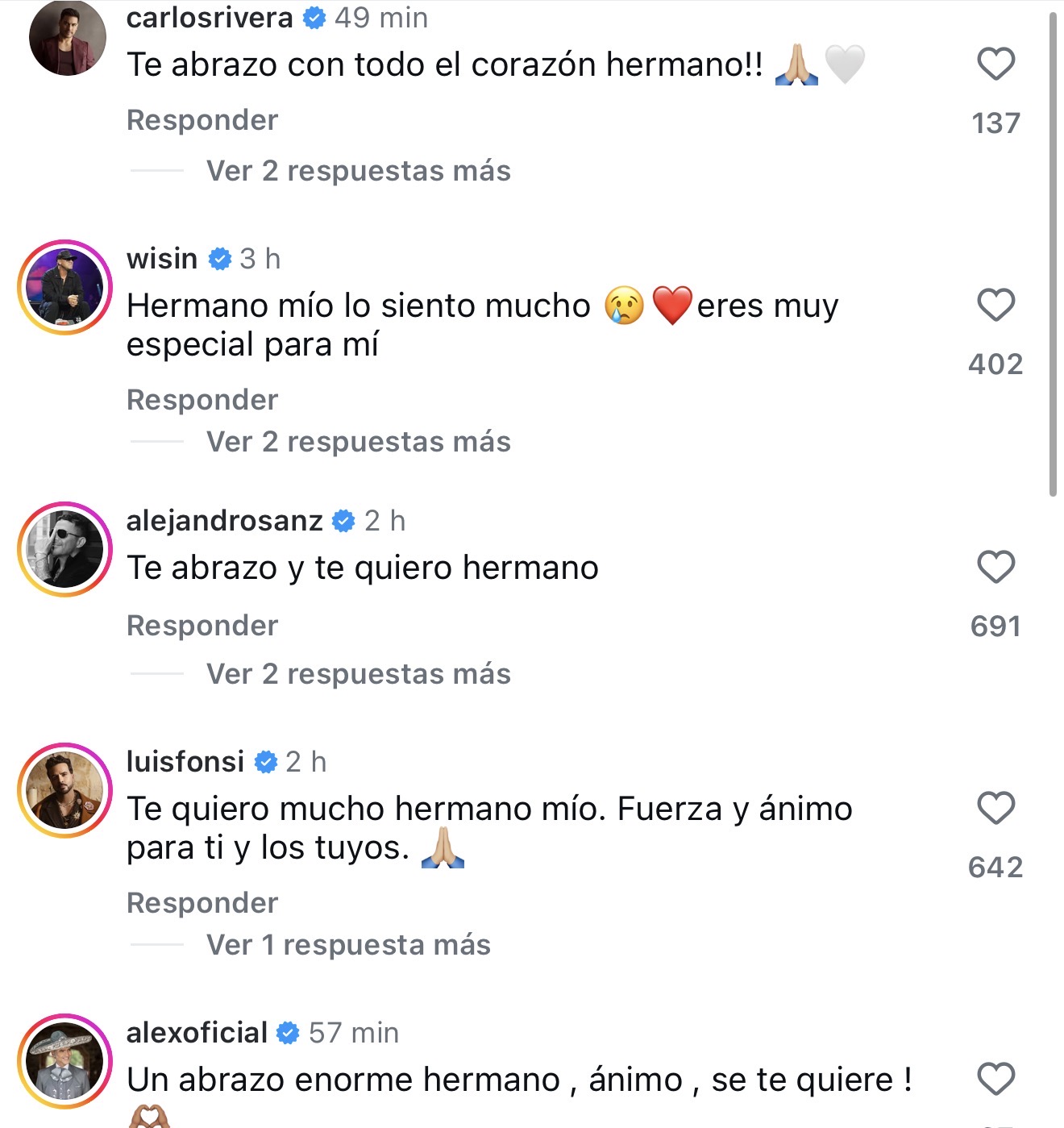 Figuras como Carlos Rivera, Alejandro Sanz, Wisin y Alejandro Fernández, entre muchos otros, expresaron sus condolencias a su colega.