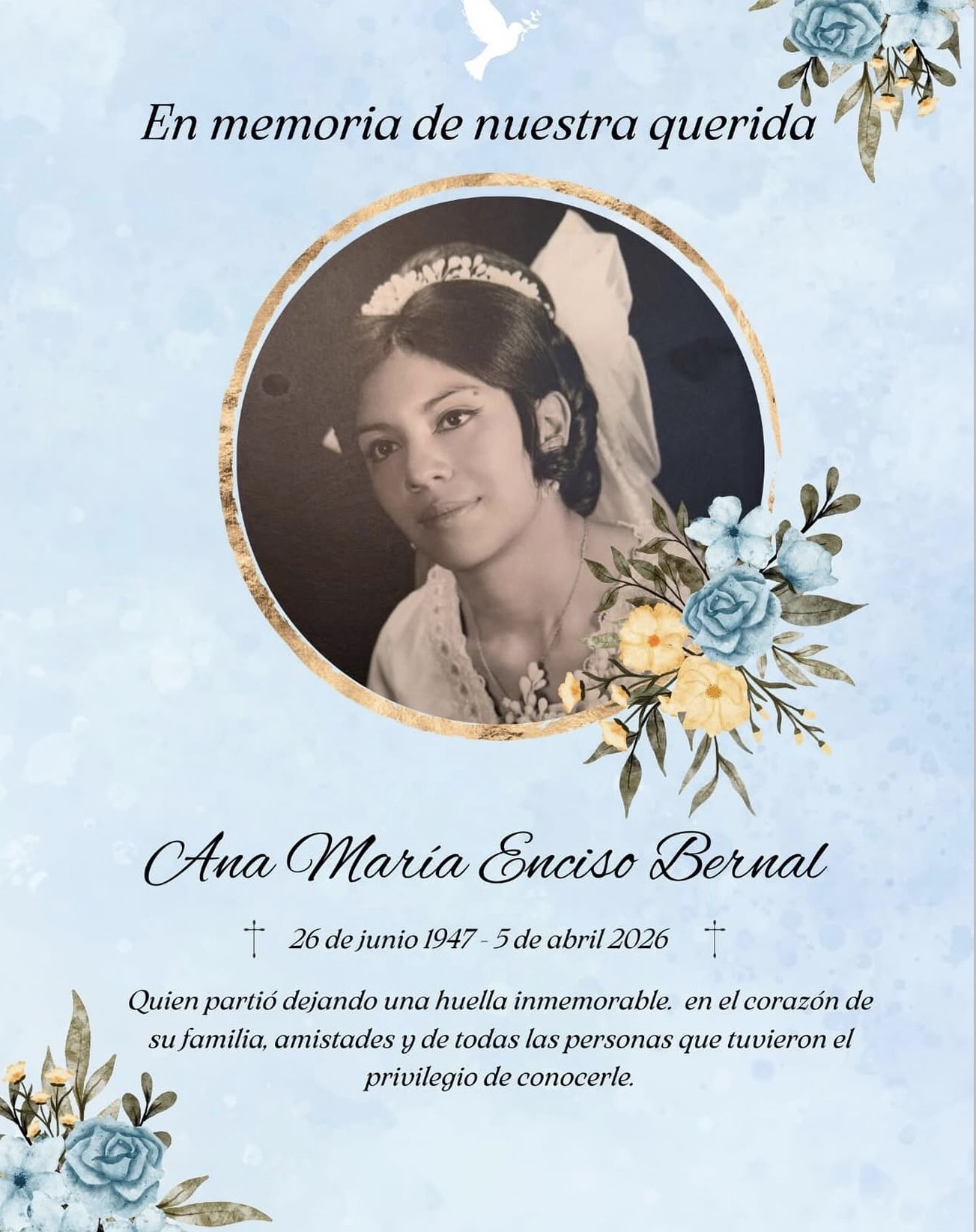 La señora Ana María Enciso Bernal tenía 78 años de edad. No se reveló la causa de su fallecimiento.