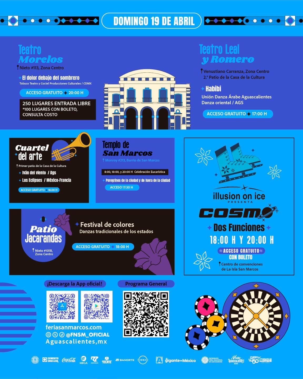 Para este segundo día de la Feria Nacional de San Marcos 2026, en Aguascalientes, el programa artístico y cultural ofrece una gran cantidad de actividades para todos aquellos que decidan asistir a los diferentes espacios.