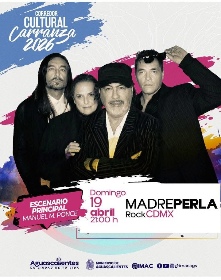 Por su parte, el Corredor Cultural Carranza contará también con un amplio programa que culminará con el concierto de Madreperla, un concepto que reúne a cuatro importantes figuras del rock en español: Cecilia Toussaint, Alfonso André, José Manuel Aguilera y Federico Fong.