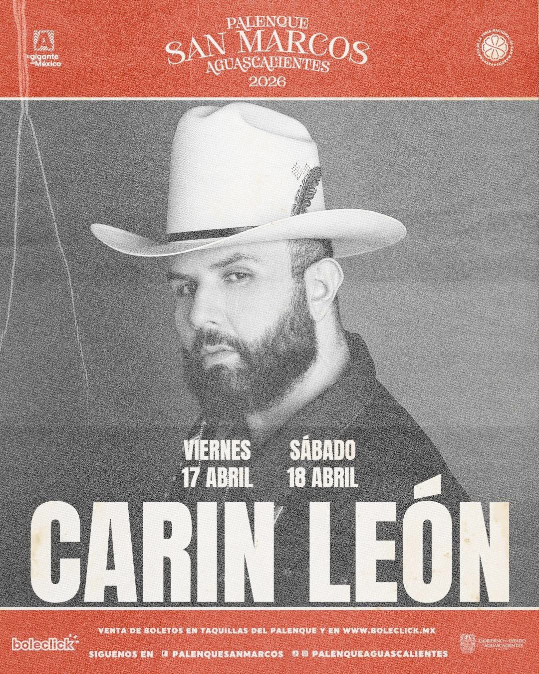 El Palenque Aguascalientes tendrá en su primera noche a Carín León. El intérprete sonorense fue el elegido para abrir el cartel de este año con 2 esperados conciertos: viernes 17 y sábado 18 de abril.