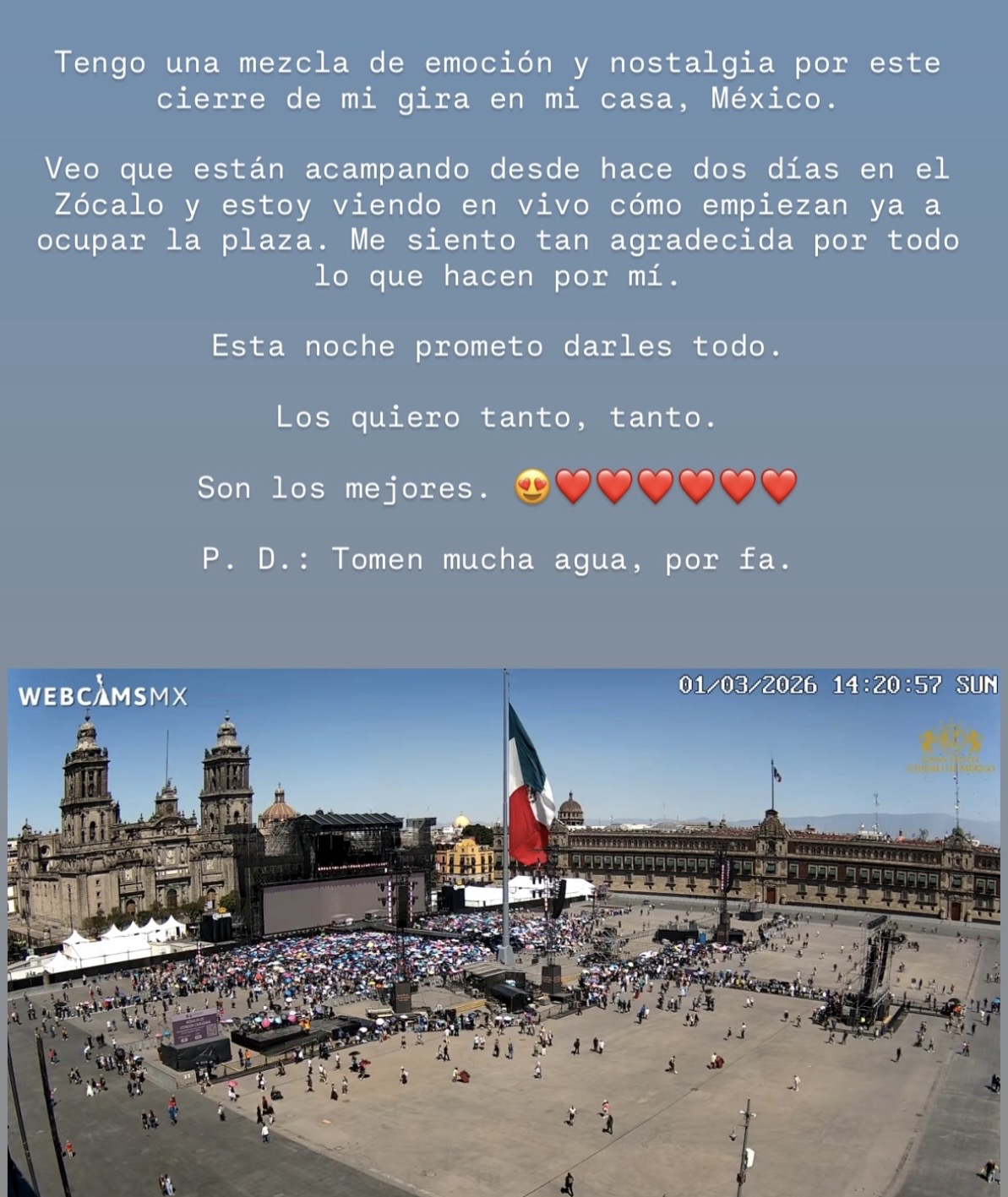 Desde 2 días de anticipación, miles de fans comenzaron a llegar a las intermediaciones del Zócalo de la Ciudad de México para ver, aparentemente por última vez, a la artista colombiana con su actual gira Las Mujeres Ya No Lloran World Tour.