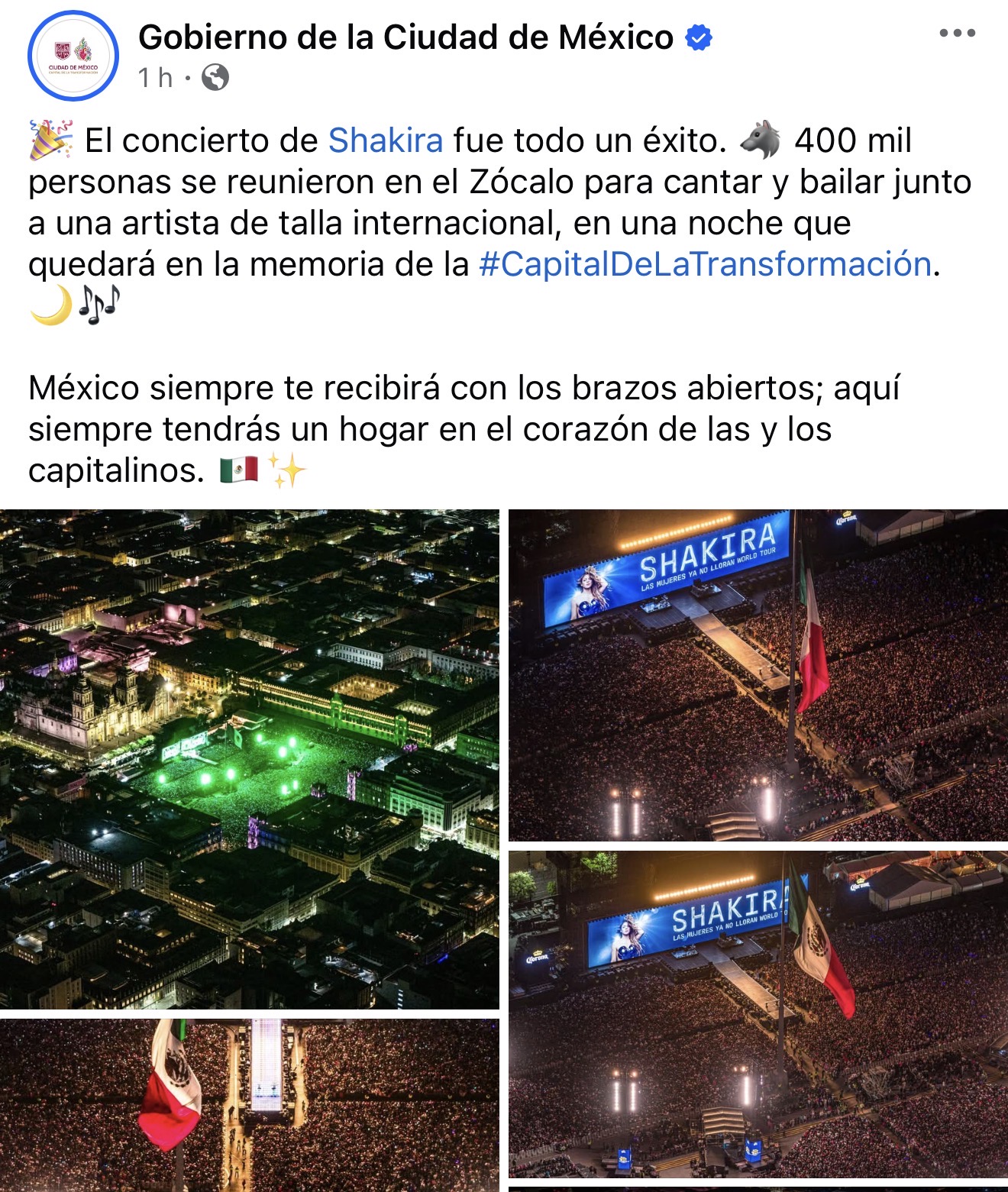 A través de redes sociales, el gobierno de la Ciudad de México confirmó que Shakira rompió récord de asistencia al reunir 400 mil personas, superando a Los Fabulosos Cadillacs en 2023, que tenían como logro más de 300 mil fans en ese mismo espacio.
