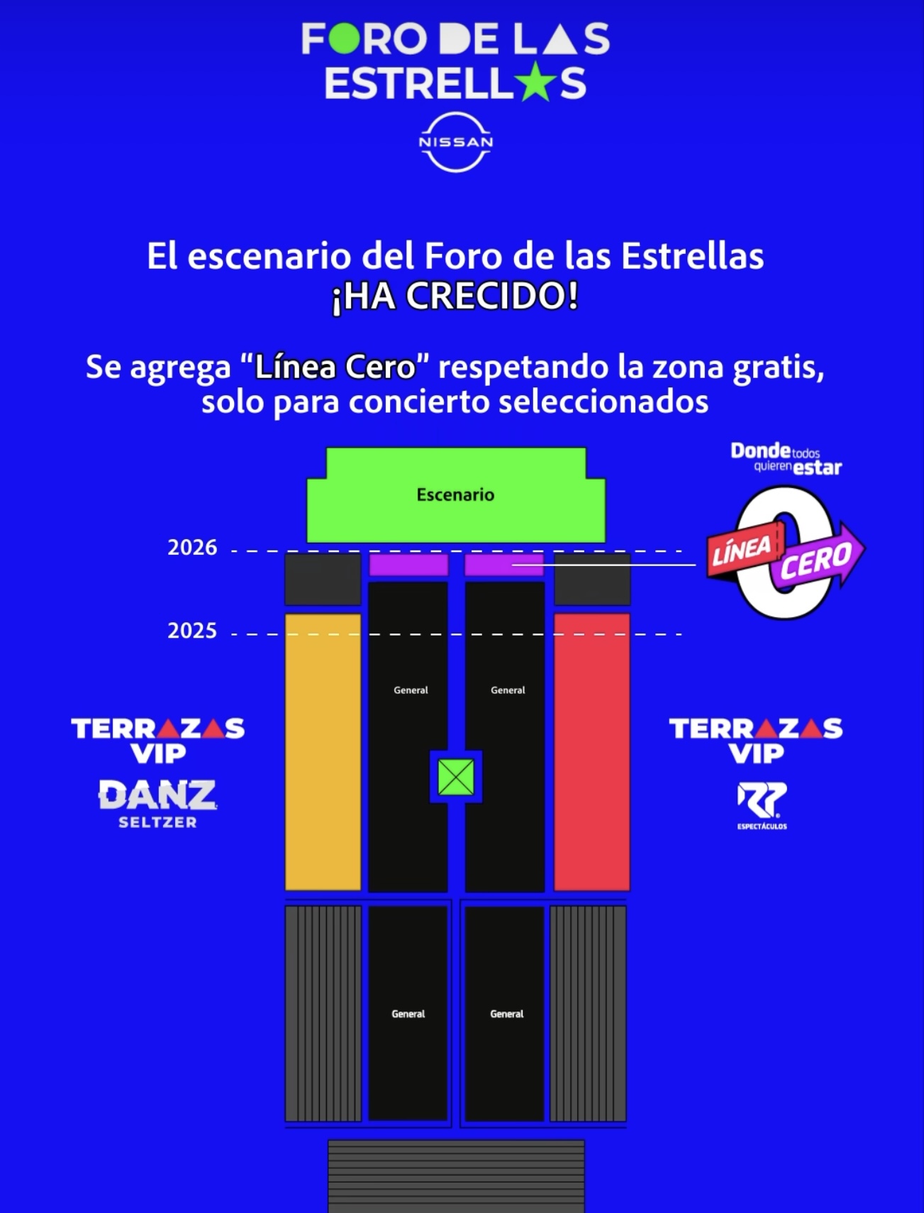 La empresa RP Espectáculos anunció que este año el Foro de las Estrellas contará en algunos de los shows con una zona llamada "Línea Cero", a la que se podrá acceder adquiriendo boletos individuales que ya están a la venta en la página Boletiland.