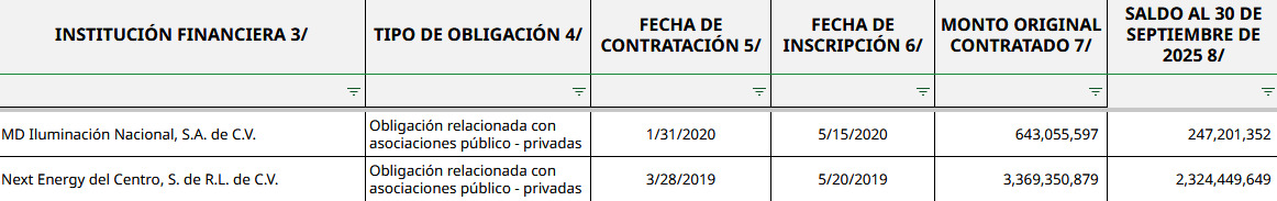 Las dos únicas deudas que el municipio tiene inscritas en el Registro Público Único de la SHCP son precisamente las que se tienen con estas dos empresas de Nuevo León que comparten el mismo socio.