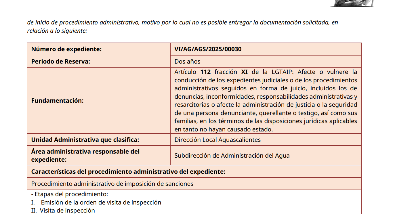 Mediante una solicitud de transparencia, se requirió información acerca de las intervenciones de la Conagua en dicho predio, sobre la existencia de algún procedimiento o sanción al respecto. La dependencia respondió que la información se reserva por los siguientes dos años argumentando que existe un procedimiento en curso.