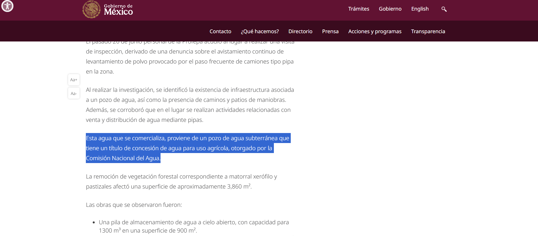 En una búsqueda realizada por el equipo de BI Noticias, a través del Localizador de aprovechamientos del Registro Público de Derechos del Agua, se reporta que no hay información que respalde un título de concesión agrícola en el pozo donde se ha denunciado la presencia de pipas de agua.
