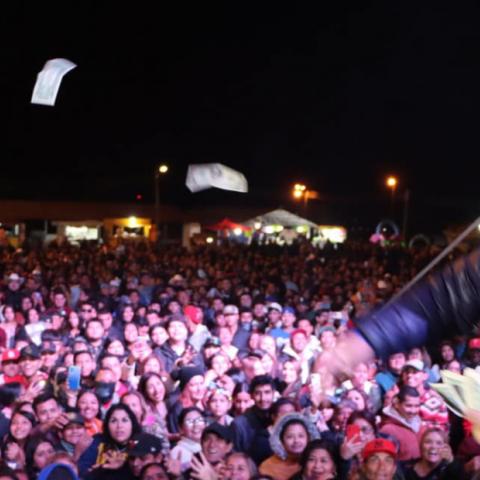 Mediante un concierto de acceso público que se llevó a cabo la noche del miércoles en las instalaciones de la "Astro Feria", el alcalde arrojó dólares a los asistentes que se hallaban al frente del evento organizado por su cumpleaños 29.