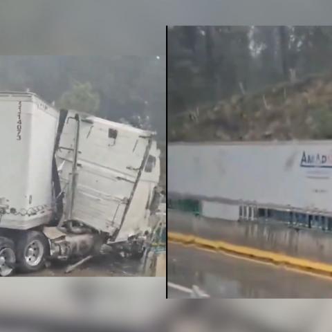 El segundo accidente tuvo lugar en el kilómetro 21+200 de la misma autopista, en dirección hacia la caseta de San Marcos. Un tráiler colisionó contra una camioneta, lanzándola contra el muro de contención y dañando además a dos vehículos que circulaban en sentido contrario. Este percance dejó al menos dos personas heridas.