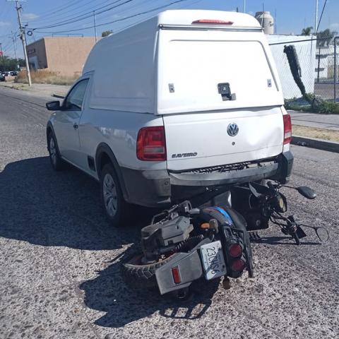 El motociclista fue identificado como MIGUEL ÁNGEL quien viajaba en una Italika en color azul con placas de Aguascalientes, en tanto que la camioneta es una VW PickUp en color blanco que era tripulada por RAÚL.