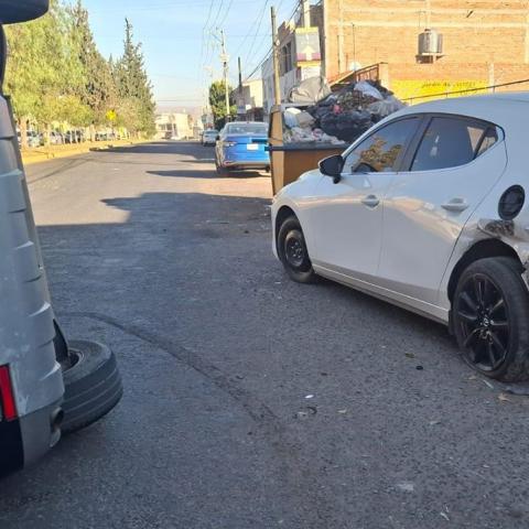 Los vehículos estacionados son un VW Jetta en color blanco modelo 2017 y un Mazda 3 modelo 2020 en color blanco que también estaba estacionado.